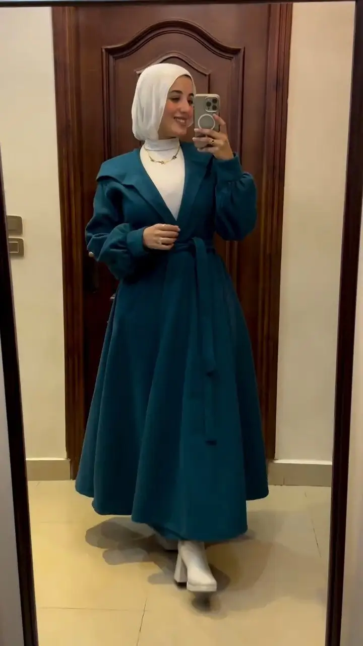🌿 فستان Manteau أنيق محتشم بتصميم عصري